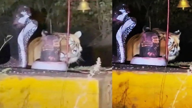 कटनी में शिवलिंग पर बाघ का अनोखा मूवमेंट, वन विभाग ने ग्रामीणों को किया अलर्ट