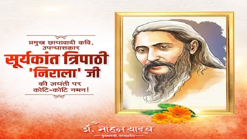 मुख्यमंत्री डॉ. मोहन यादव ने साहित्यकार सूर्यकांत त्रिपाठी निराला की जयंती पर किया नमन