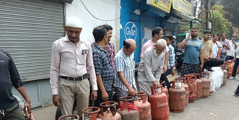 गैस सिलेंडर की कमी, कतारों में खड़े उपभोक्ता, रविवार को बंद रहेंगे बाटलिंग प्लांट