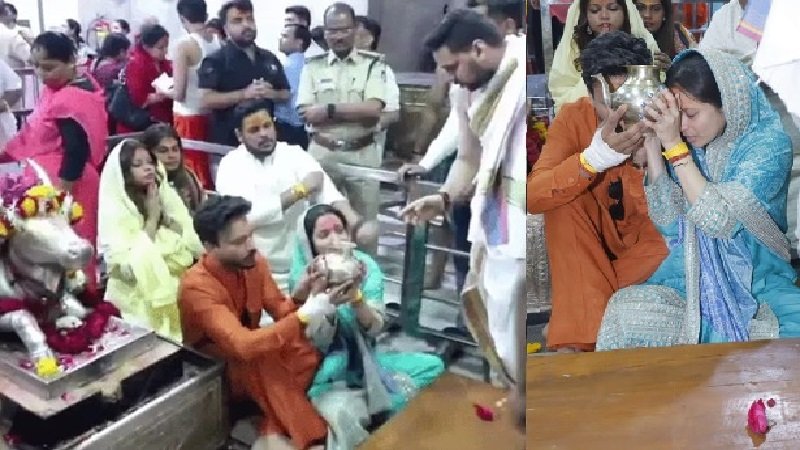 महाकाल के दर्शन करने उज्जैन पहुंची एक्ट्रेस अंकिता लोखंडे, पति संग भस्म आरती में हुईं शामिल