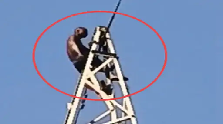 132 केवी टावर पर चढ़े युवक से मचा हड़कंप, पुलिस और बिजली विभाग मौके पर