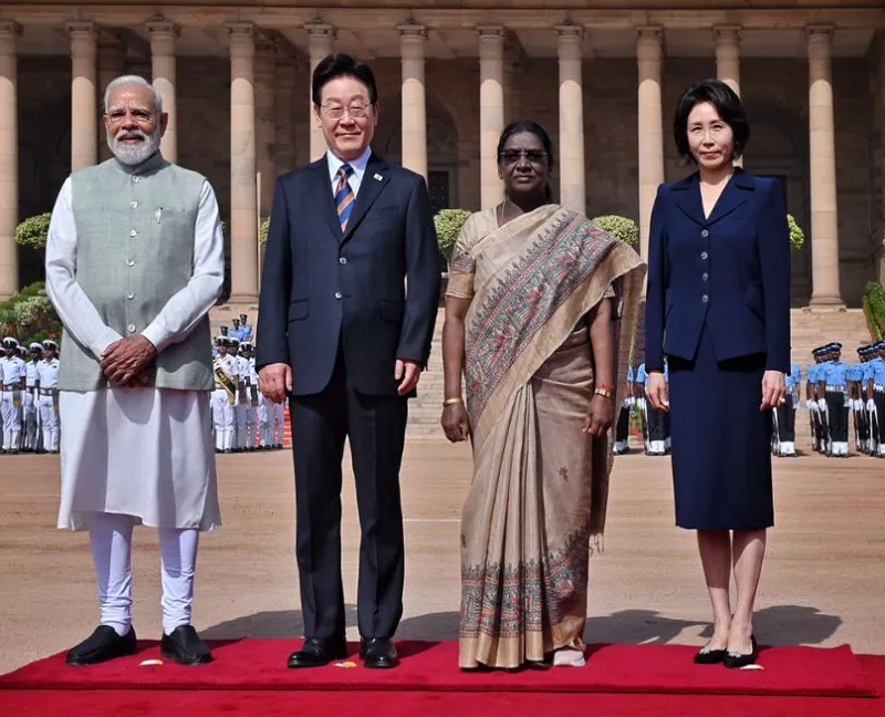 नई दिल्ली। दिल्ली में सोमवार को राष्ट्रपति भवन के प्रांगण में दक्षिण कोरिया के राष्ट्रपति ली जे म्युंग और उनकी पत्नी किम हे-क्युंग का औपचारिक और भव्य स्वागत किया गया। इस अवसर पर भारत की राष्ट्रपति द्रौपदी मुर्मु और प्रधानमंत्री नरेंद्र मोदी उपस्थित रहे। पूरे समारोह में राजनयिक गरिमा, सांस्कृतिक सौहार्द और पारंपरिक भारतीय आतिथ्य की […]