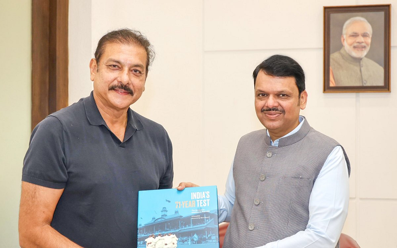 देवेंद्र फडणवीस और रवि शास्त्री की मुलाकात, पूर्व क्रिकेटर ने भेंट की किताब