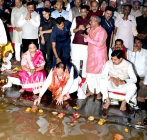 पूरे विधि विधान के साथ पुरोहितों की मौजूदगी में दोनों नेताओं ने मां नर्मदा की पूजा अर्चना की। नर्मदाष्टकम् के श्लोकों और हर.हर नर्मदे के जयकारों के बीच उन्होंने देश और प्रदेश की खुशहाली और समृद्धि के लिए प्रार्थना की. श्री नड्डा और डॉ. यादव ने मां नर्मदा का दुग्धाभिषेक कर दीपदान भी किया.