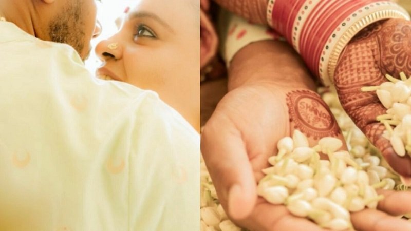 तस्वीरों में शानू शर्मा लाल रंग के खूबसूरत आउटफिट में बेहद आकर्षक नजर आ रही हैं जबकि उनके पति आइवरी रंग की शेरवानी में नजर आए। एक फोटो में वह अपने पति को गाल पर किस करते हुए दिखाई दीं जिसने सोशल मीडिया पर लोगों का ध्यान खींच लिया। हालांकि चेहरे को छिपाकर उन्होंने उत्सुकता को और बढ़ा दिया है।